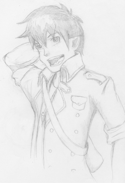 Just a sketch of Rin as I think he'll look in the future in his exorcist uniform.
