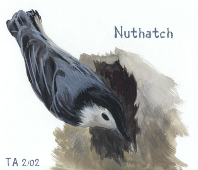 Nuthatch - A second bird sketch. Probably my favorite of those I did.(goauche and white pencil)