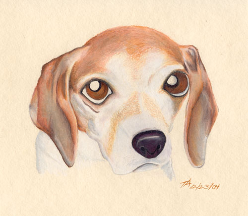 Buster - A picture I did for my bosses of their beagle, Buster.(Prismacolor pencils)