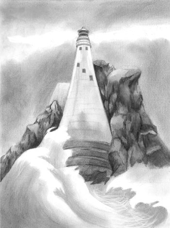 The Lighthouse - A lighthouse I drew for perspective practice in my Comic Book Illustration class. There are parts of it I really like and parts of it that need some manner of adjustment I can't quite put my finger on... but it was worth posting.(pencil drawing)