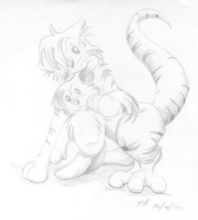 I've Got the Bear - Again, with the kitties. This time it's Kitty Max. And, he's running away with Sage's teddy bear! Stop him! (pencil drawing)