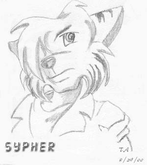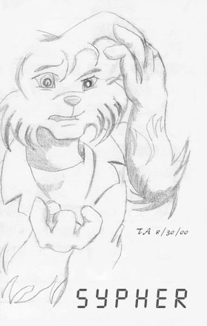 Sypher - Just a generic drawing of Sy. I love his hair. More than Max's? Mebbe. (mechanical pencil drawing)