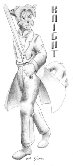 Modern Day Knight - The MBI's resident "knight," Alex Weathers, sword drawn, on the lookout for trouble. (mechanical pencil drawing)