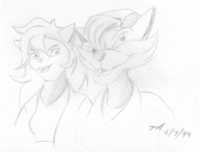 Shall We? - Crash and Kami... looking like they're about to have some fun and maybe cause some mischief. (pencil drawing)
