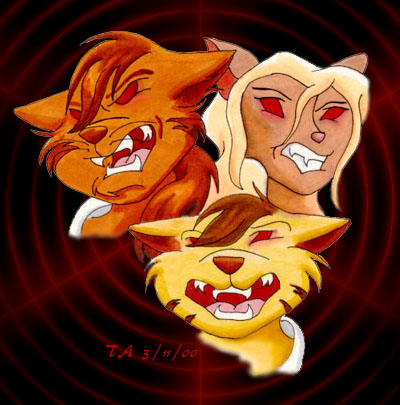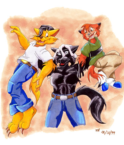 Crash's Trio! - It's three of Crash's RPG characters. Left to right: Crash Clawson/Furley, RJ Tremor, and Aaron Firestar. (Prismacolor markers)