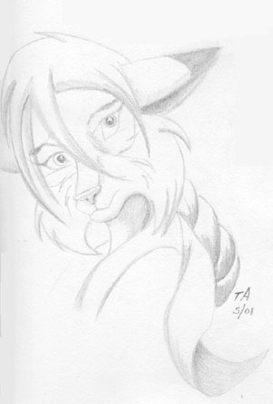 The Kitsune - Former MBI employee Kaeru Sosonokasu, a kitsune with quite an interest in the CyberKats. (pencil drawing)