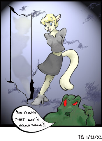 Note: All fanfic and/or RPG characters mentioned on this page are the property of their respective creators and/or players. The SWAT Kats and associated characters from the cartoon SWAT Kats: The Radical Squadron are copyright Hanna-Barbera Cartoons Inc. All Rights Reserved. © 1995. All artwork on this page is the property of Kristen Sharpe/T.L. Amos.