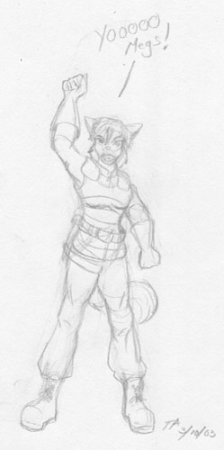 Yoooooo, Megs! - Trina offers a stirring battle cry. (quick pencil sketch)